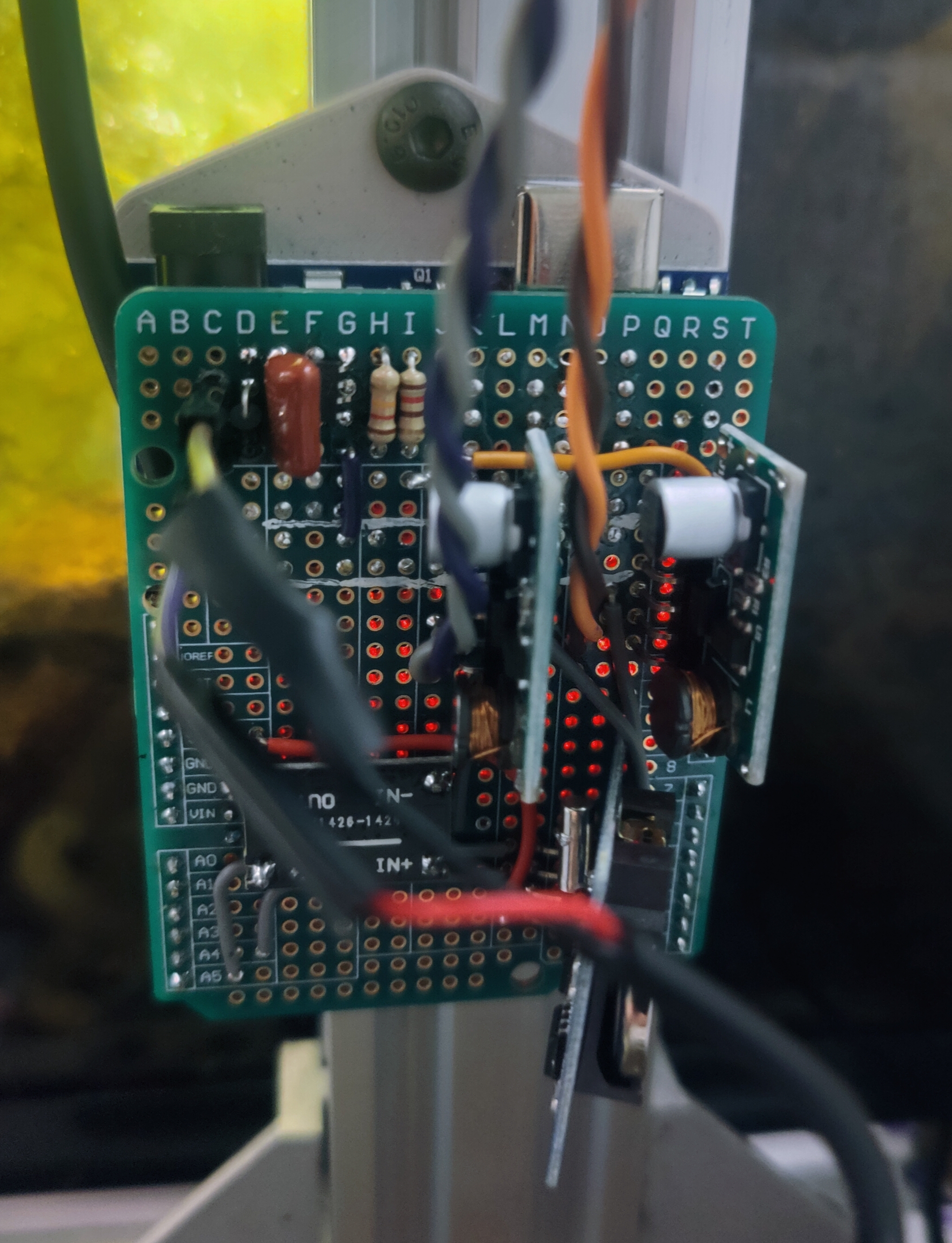 I controlled the entire system with an Arduino Uno and a custom circuit I built on a prototyping shield. The Arduino managed the timing of the water pump and grow lights using a DS3231 RTC module, and powered Bridgelux LED light strips via constant-current buck converters. I actuated a low-cost USB aquarium pump using a MOSFET, setting it on a timer to fill and drain the grow bed.