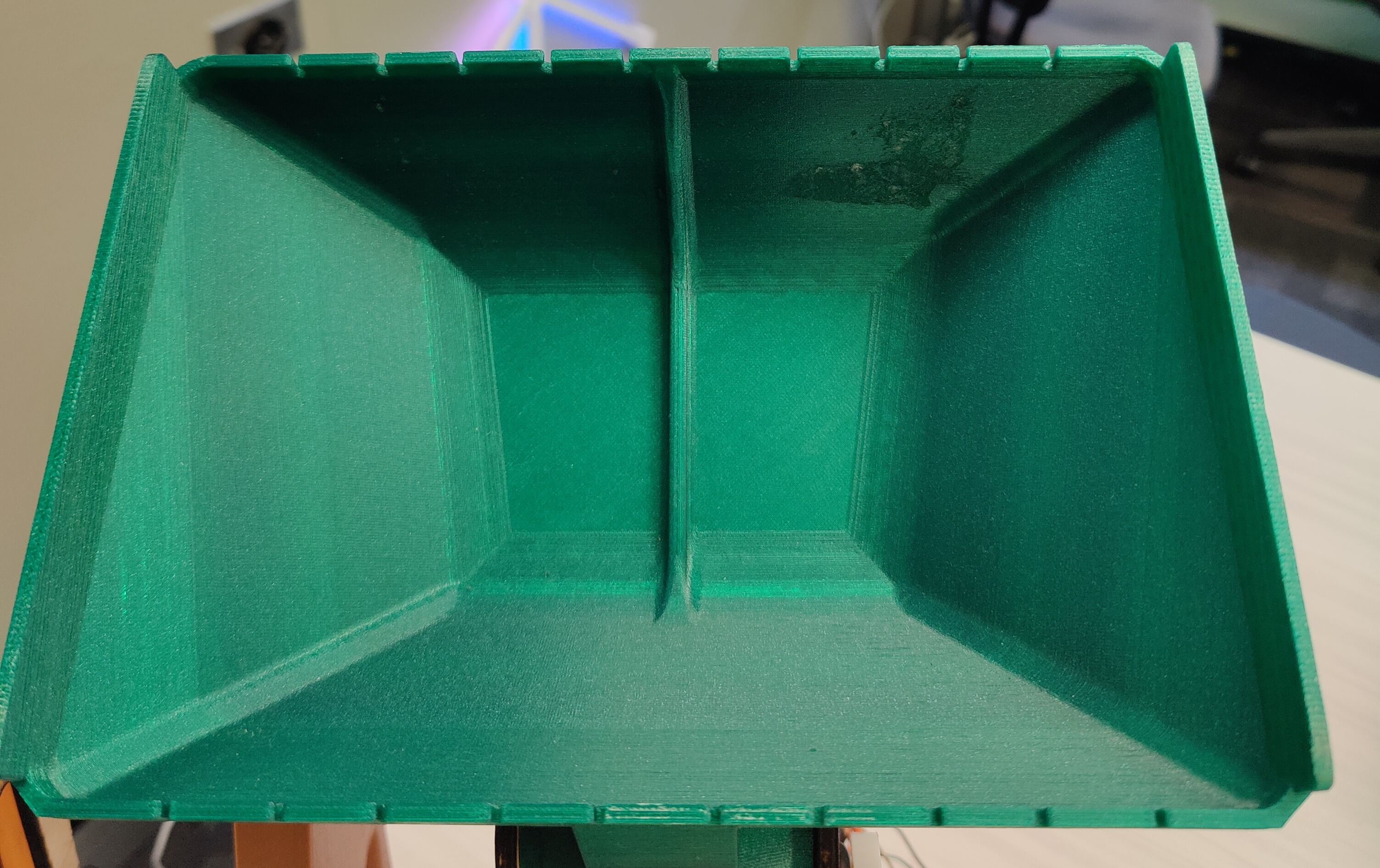 While the specialized wheel geometry excelled at stair-climbing, it compromised maneuverability on flat surfaces. To mitigate this, I designed an egg retrieval mechanism that eliminated the need for precision robot positioning. The concept I chose was inspired by a big-box store ball pit, using an array of elastic bands stretched over the opening of a large basket. This design could reliably pick up an egg over an area of 225x150 mm and retain it safely as the robot descended the stairs.