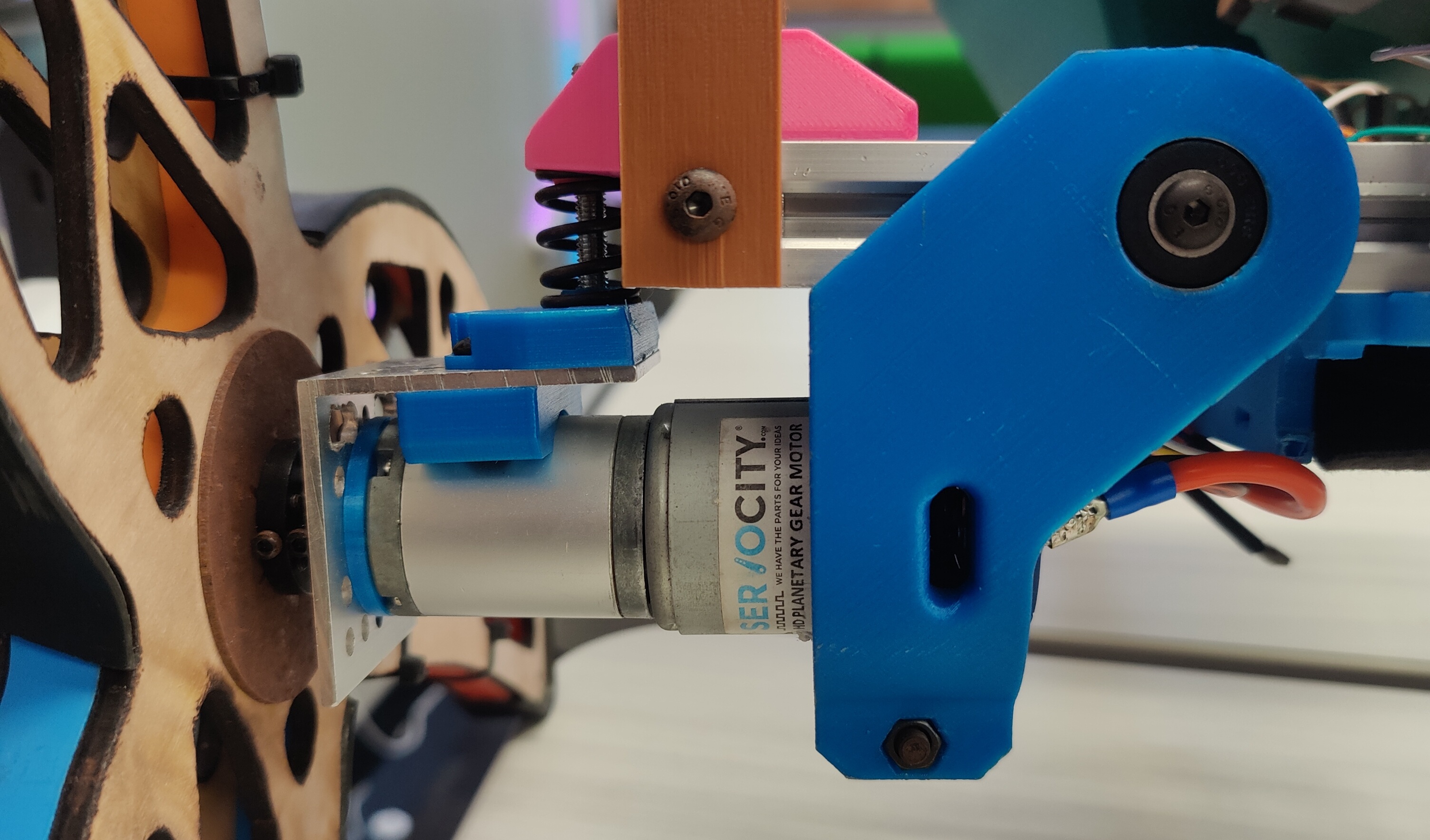 To complement the robust wheels, I implemented a suspension system to absorb major impacts. To manage impact loads, I repurposed a pair of Kawasaki Z125 motorcycle clutch springs. By calculating the total strain energy capacity of the spring pair, I verified they could effectively dissipate the kinetic energy from a 1-meter free-fall drop without bottoming out. For simplicity, I used a swing-axle design with 608 bearings as pivots and integrated the motor housing as a structural component.
